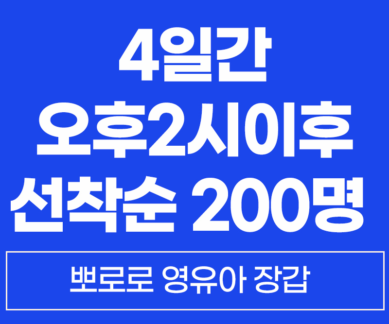 Á¦¸ñ 4Àϰ£ ¿ÀÈÄ 2½Ã ÀÌÈÄ ¹æ¹®°´ ¼±Âø¼ø ¸ÅÀÏ 200¸í ÃÑ800¸í »Ç·Î·Î ¿µÀ¯¾ÆÀå°© ·£´ý Áö±Þ